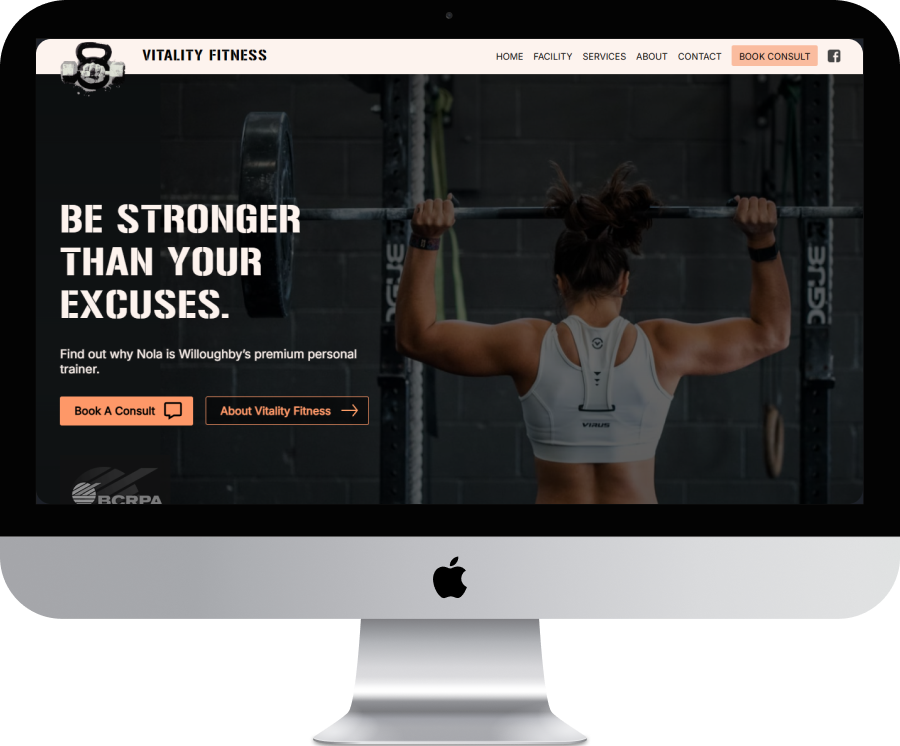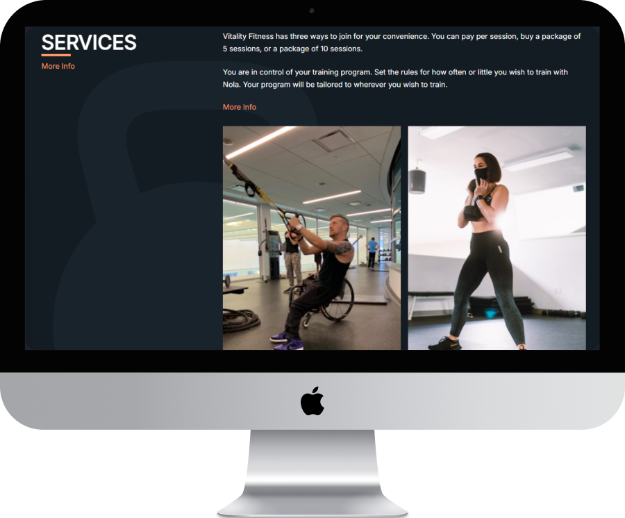 Vitality Fitness, a personal training business, needed a modern, user-friendly website to attract new clients and provide easy access to services. The website needed to reflect the company's brand and values, while enabling clients to learn more, book sessions, and get in touch easily.