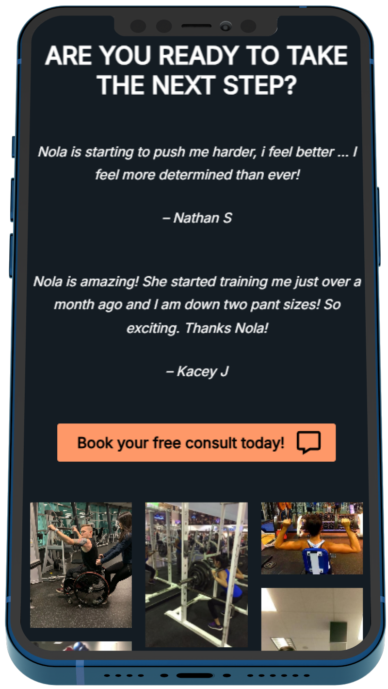 - Client Engagement: Allow visitors to easily book sessions and contact the trainer.